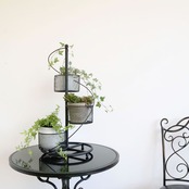 スタイリッシュにグリーンを飾る、アイアンスタンドプランター。鉢カバーごと入れて楽しめる便利な設計で、玄関やリビング、ベランダなど、あらゆるスペースをセンスよく演出してくれます。
