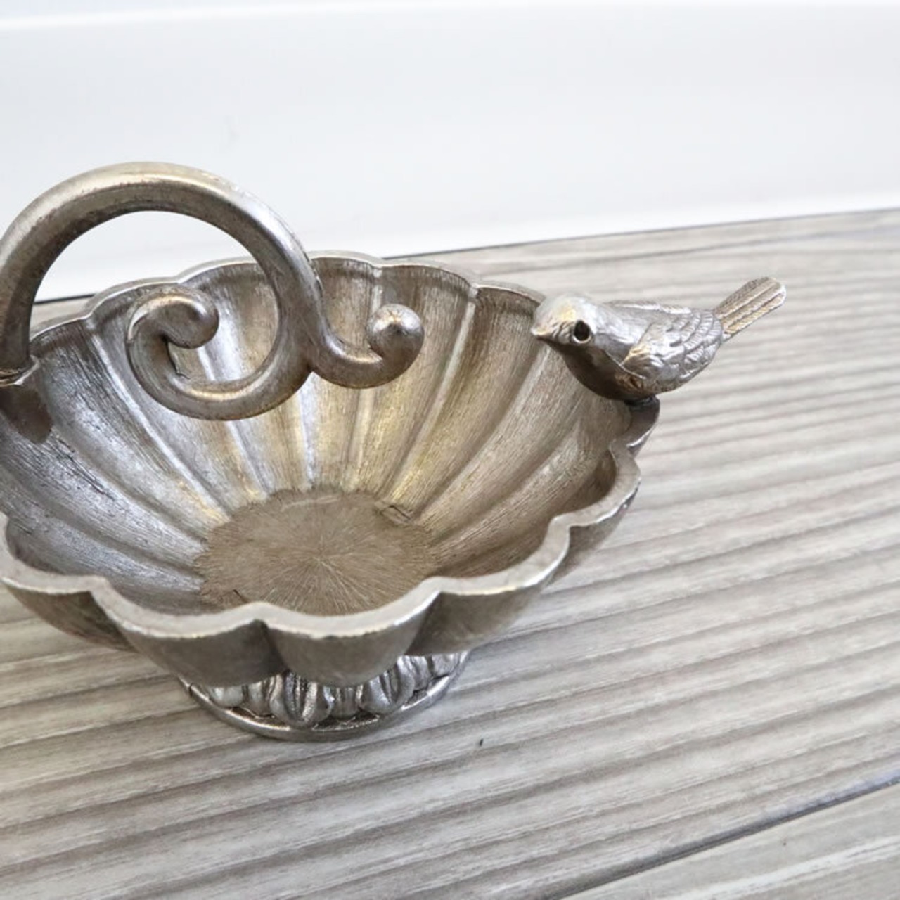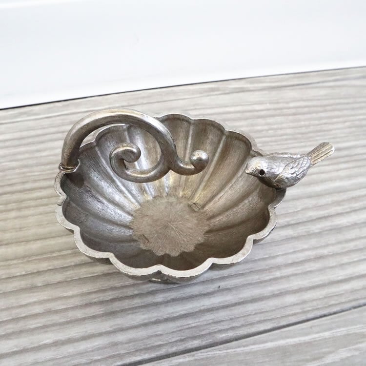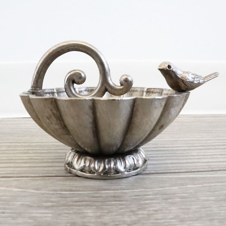 ちょこんと佇む小鳥がなんとも愛らしい、ヨーロピアンテイストのアイアン製小物入れ。