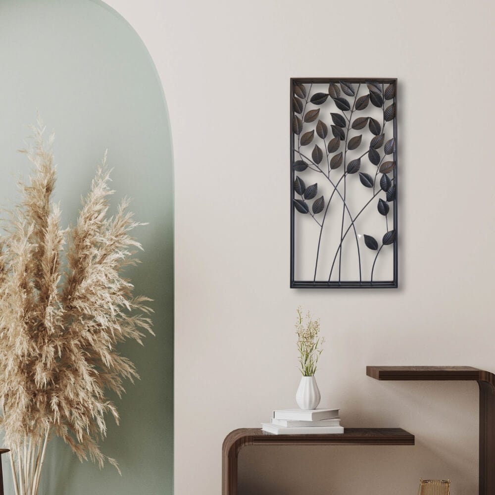 ブラックリーフ・モダンウォールアートパネル|軽量&壁掛け簡単