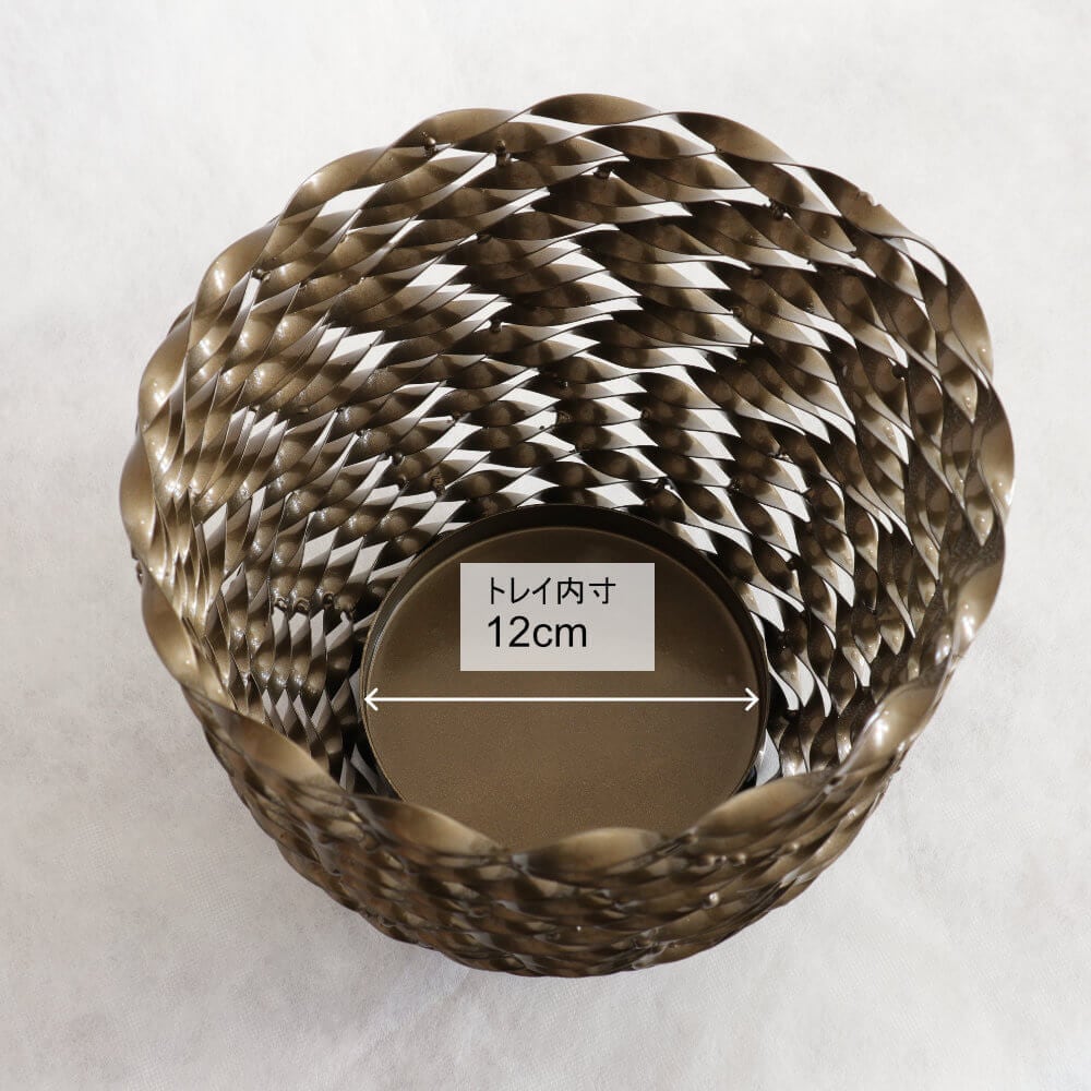 存在感のあるゴールドのアイアンがインテリアに華やぎを与えるLサイズのプランター。すべて溶接で仕上げられた高級感のあるデザインで、5号鉢まで対応。観葉植物や大きめのグリーンを美しく引き立て、お部屋に洗練された印象をプラスします。