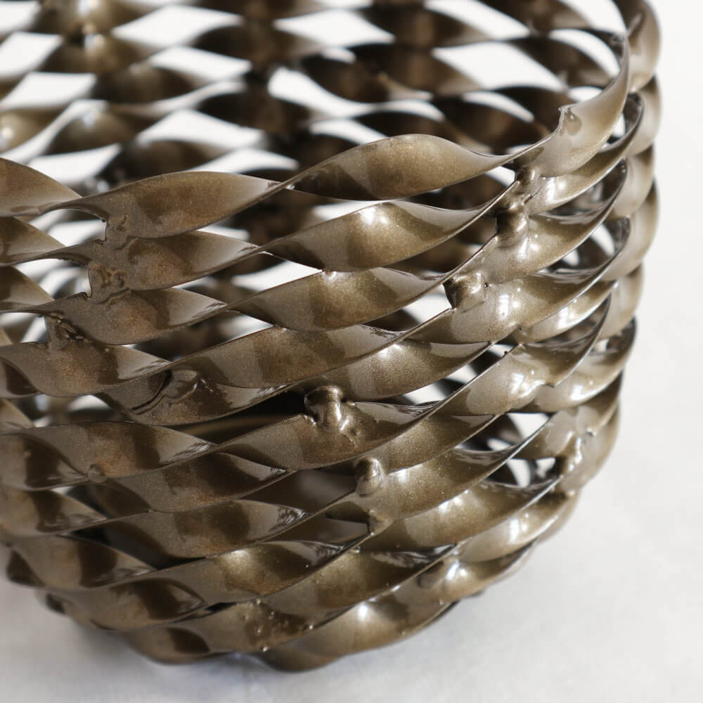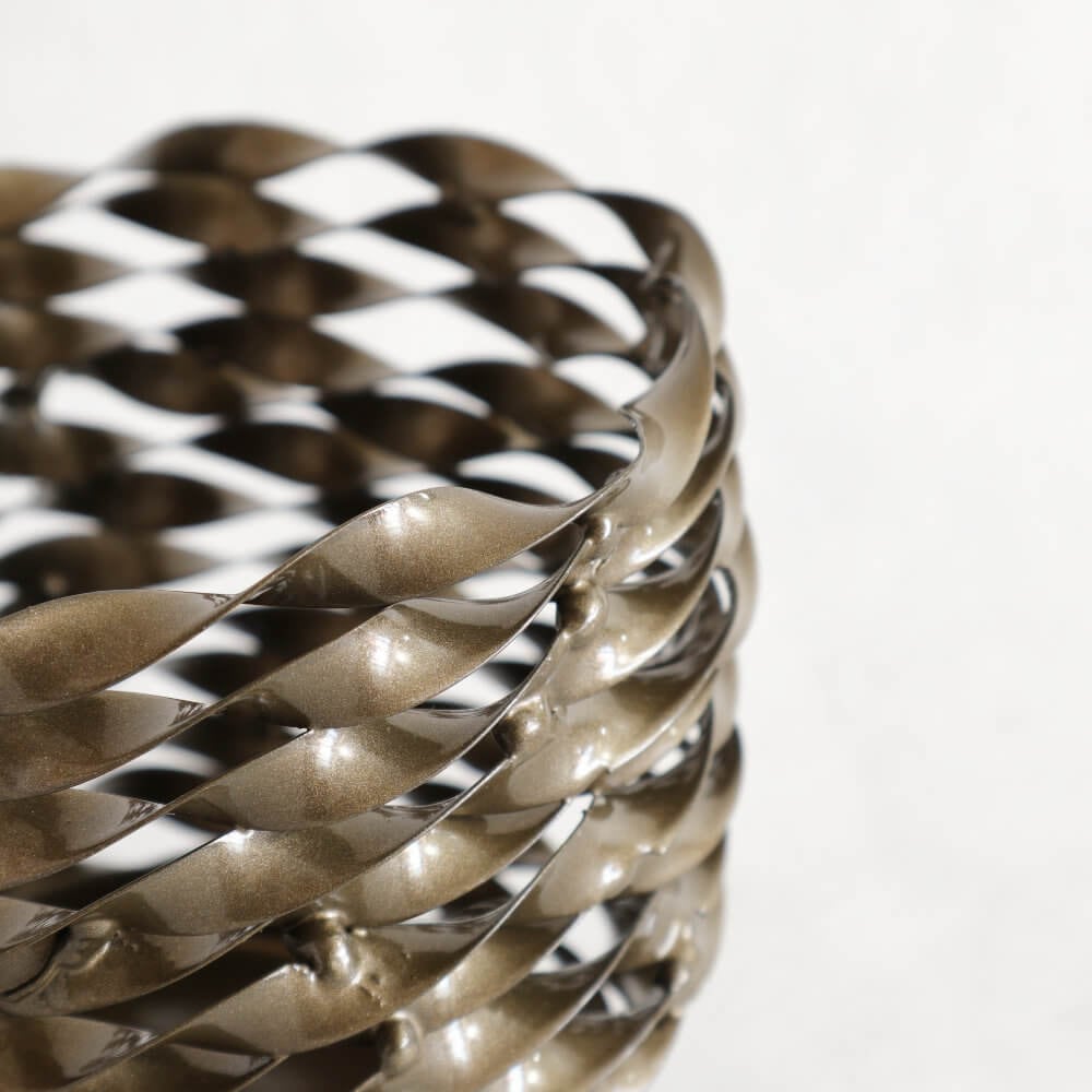 上品なゴールドのアイアンを一つひとつ手作業で溶接して仕上げた、モダンテイストのプランター(鉢カバー)Sサイズ。お気に入りの3号鉢をそのままセットでき、植物の美しさをより引き立ててくれます。リビングや玄関、デスク周りなど、空間のアクセントにぴったり。引っ越し祝いや新築祝いにもおすすめです。