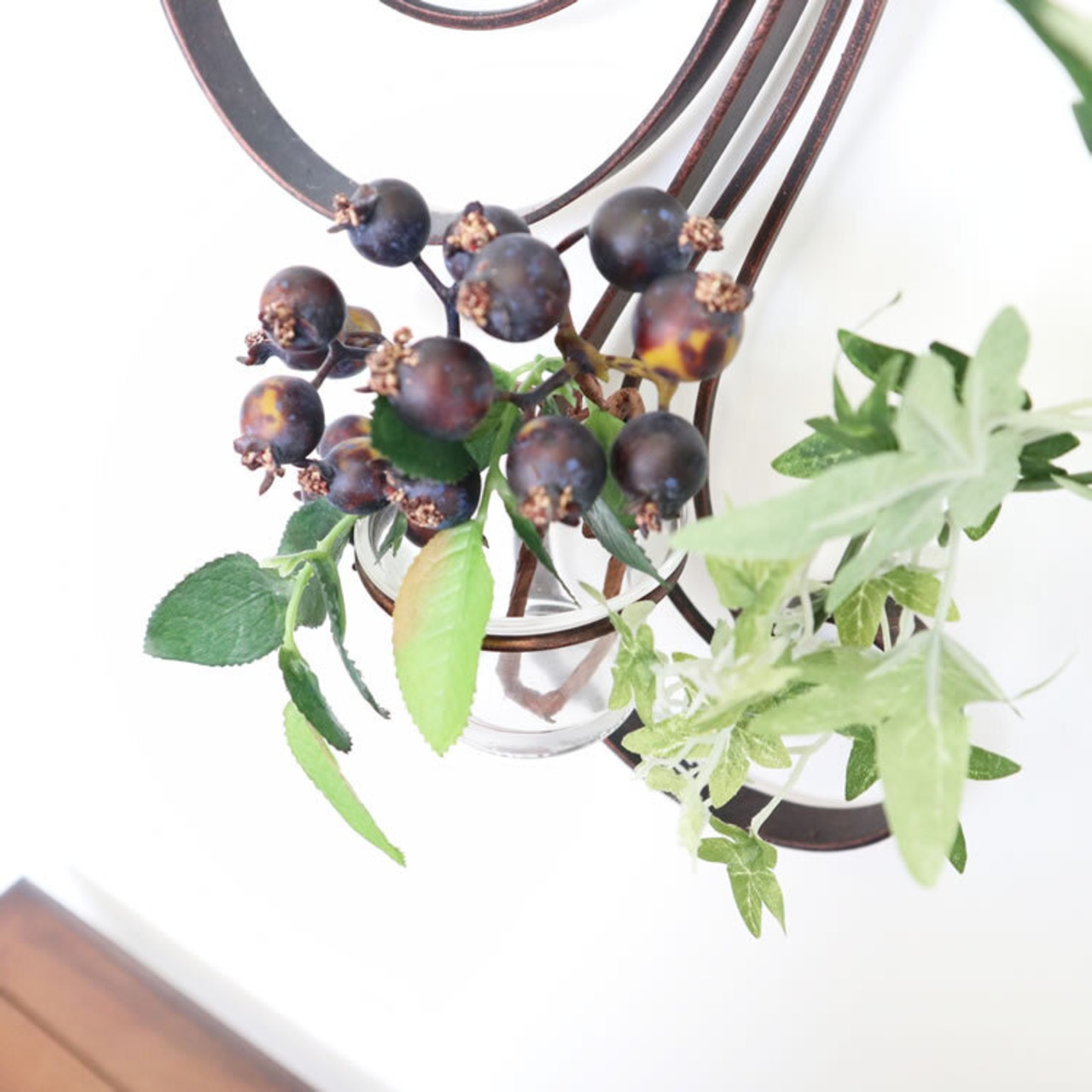 くるりと踊るアイアンの一輪挿し 壁掛けウォールベース(ガラスコップ付き)