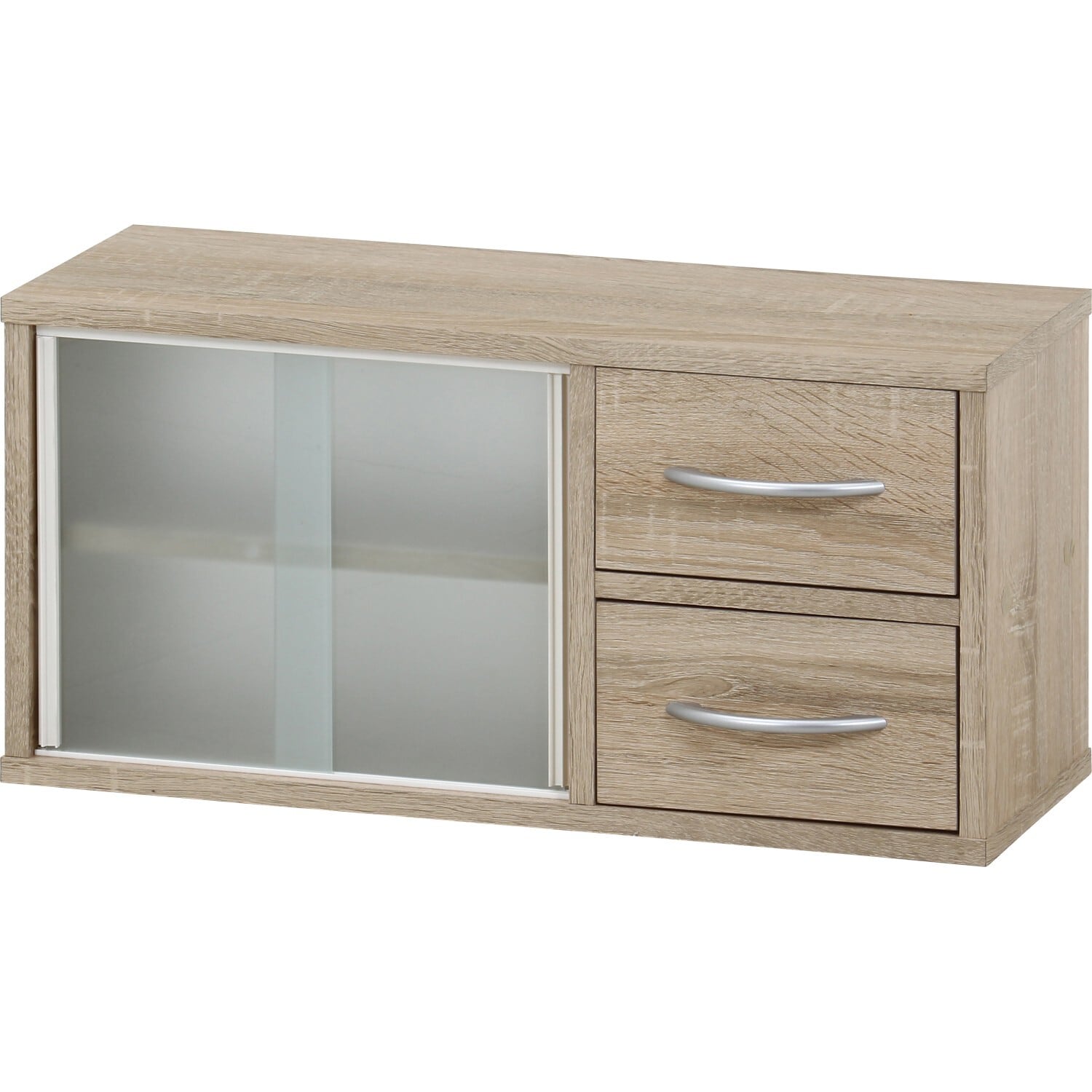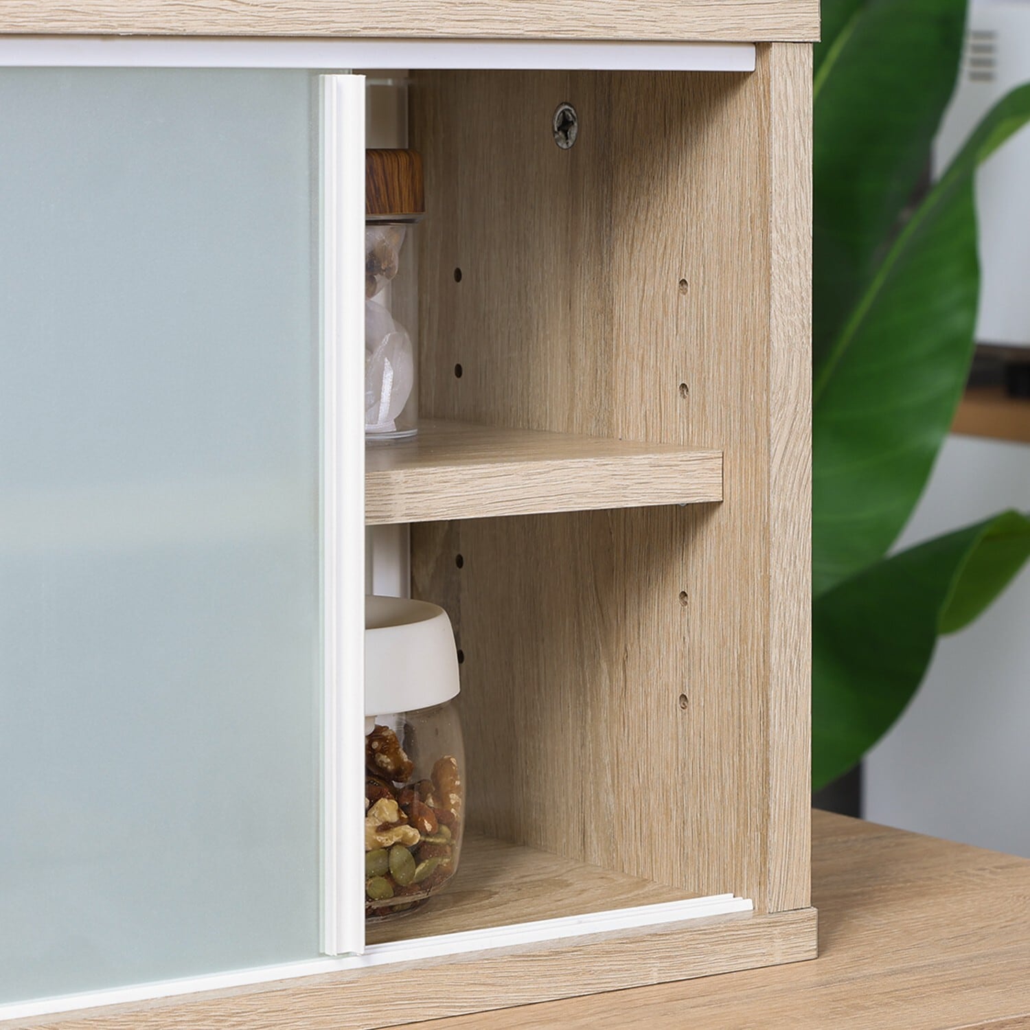 両側から取り出せる!木目調カウンター上収納ラック(幅60cm)|ガラス扉&引き出し付き