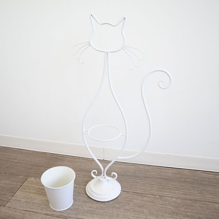 白猫のシルエットアイアンプランター(鉢カバー付き)