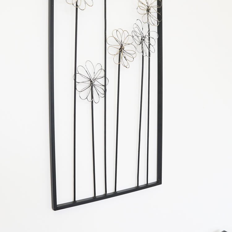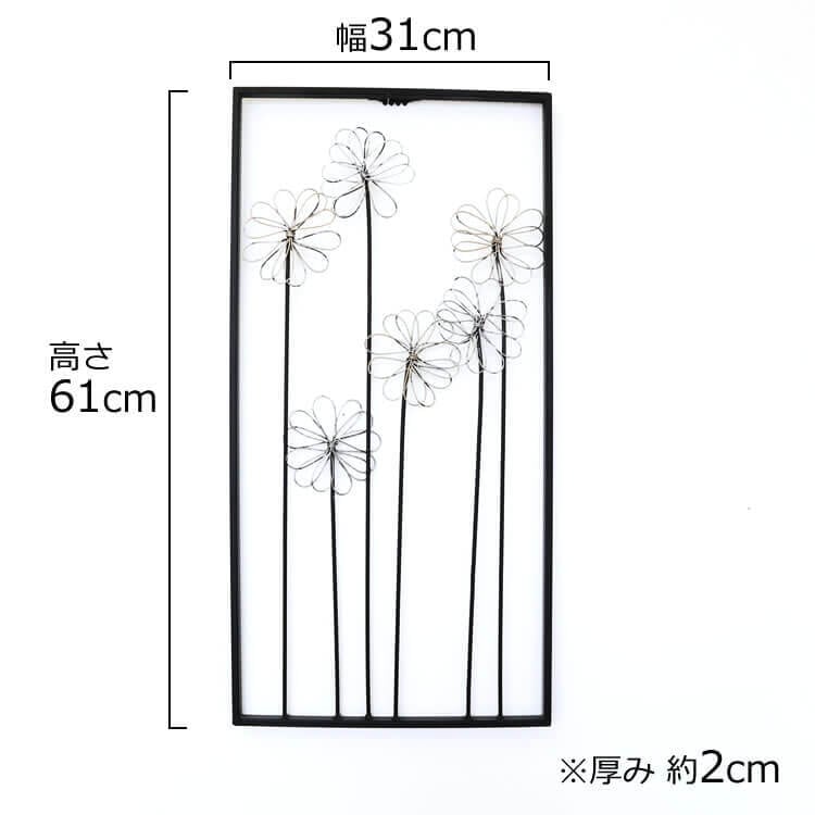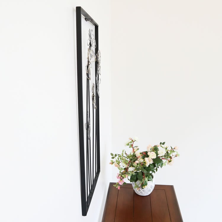 アイアンフラワーのウォールアート|立体花×スリム縦長フレーム(31×61cm)