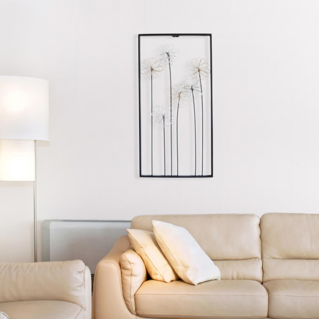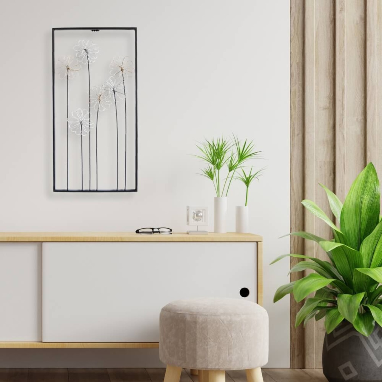 繊細な花モチーフが白い壁に映えて、空間の印象を静かに整えるウォールアートです。
