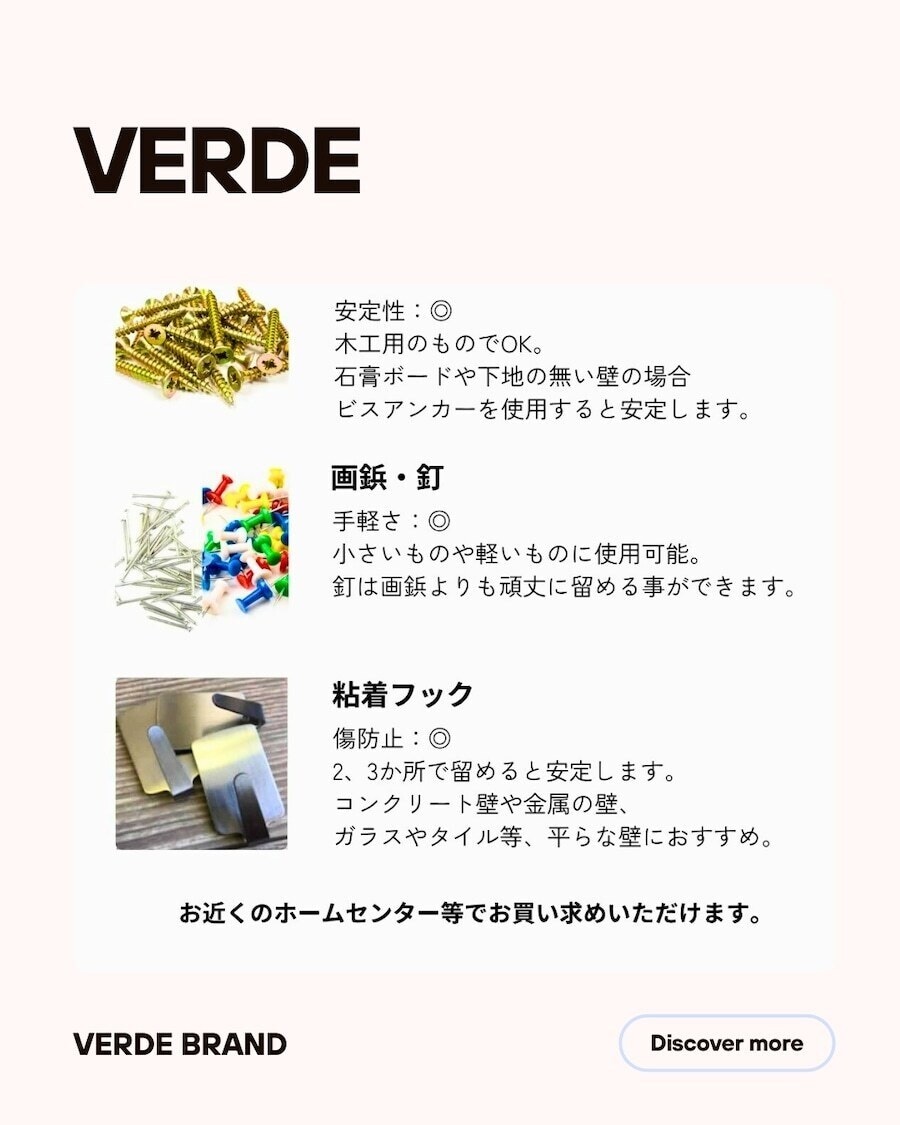 壁面アイテムの取り付け金具(釘・ネジ等)は付属しておりません。ホームセンター等でご用意ください。