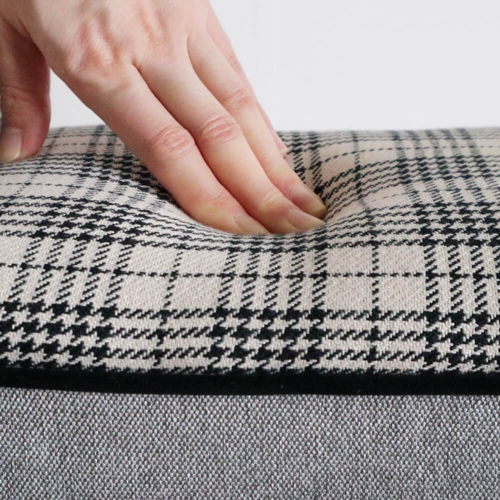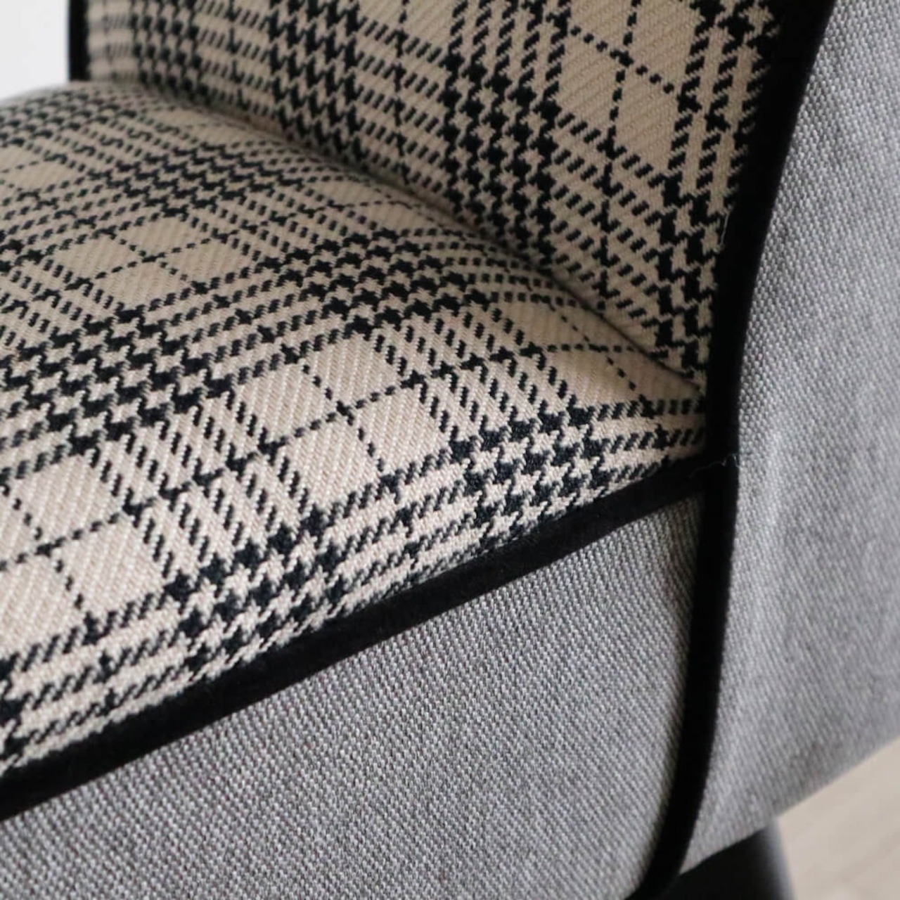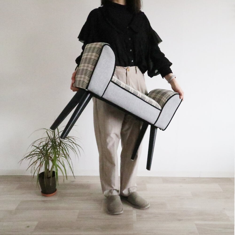 座面はモケット生地で、見た目の上品さと座り心地を両立しました。