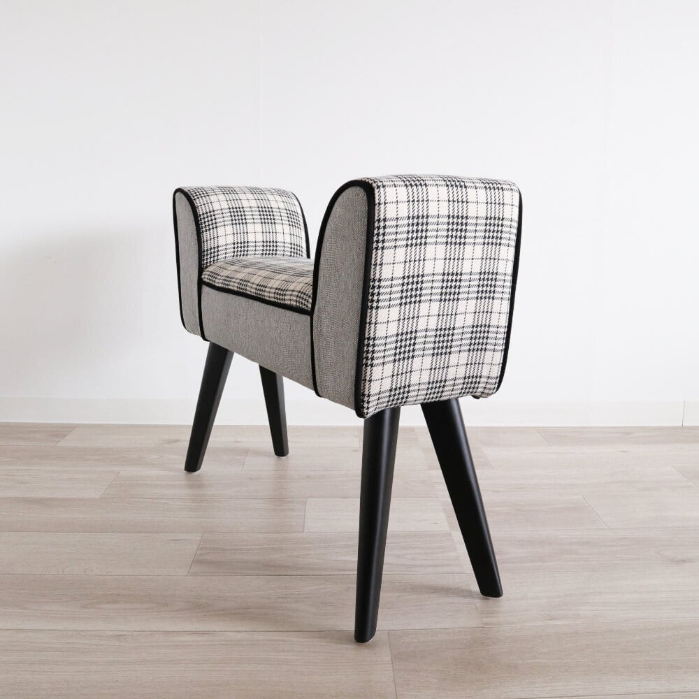 玄関チェア(スリム椅子)を探している方へ。奥行22cmの省スペース設計で、玄関・廊下・寝室にも置きやすいモケット座面チェアです。