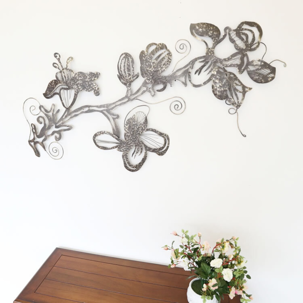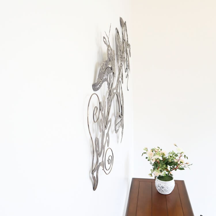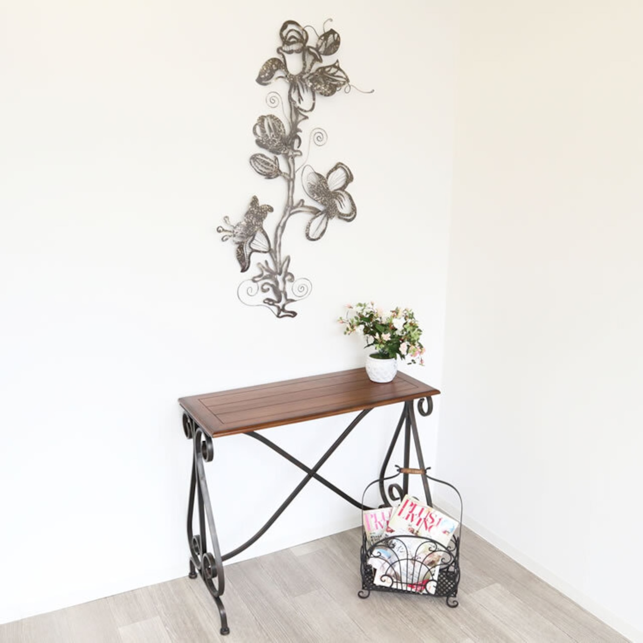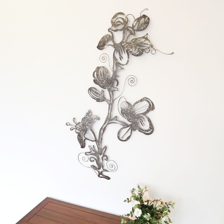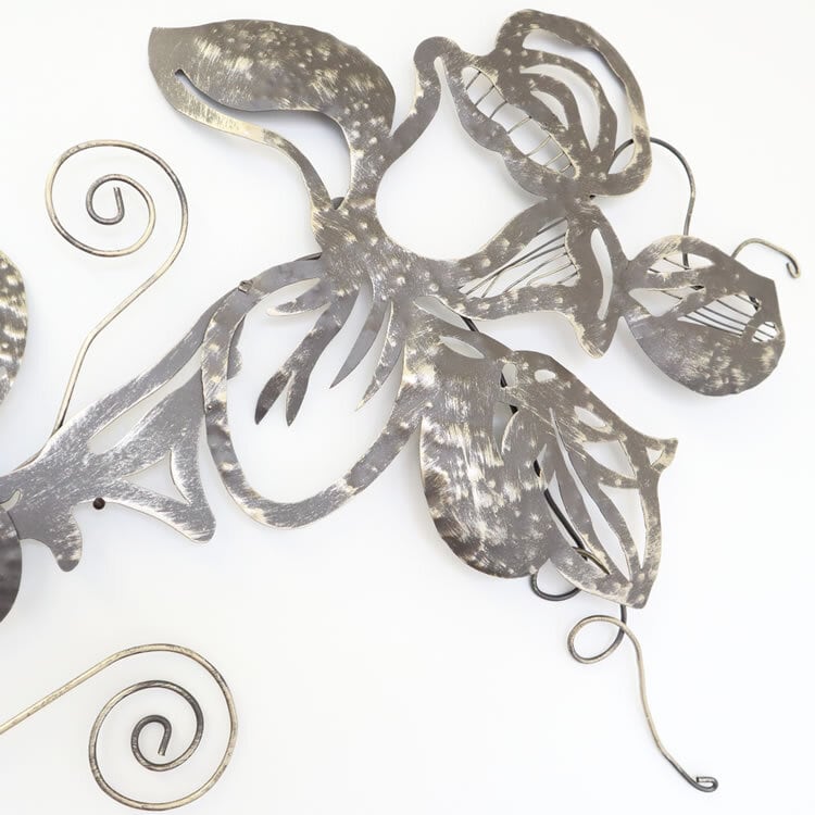 花モチーフが空間を一気に引き締める、大きめサイズのアイアン製壁飾りです。