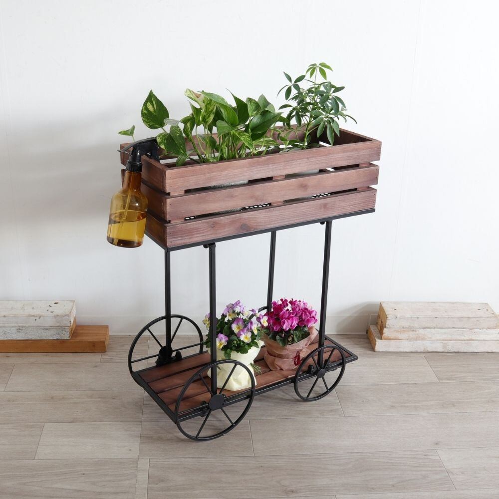 そんな時に取り入れやすい、フラワーカート型のプランタースタンドです。
