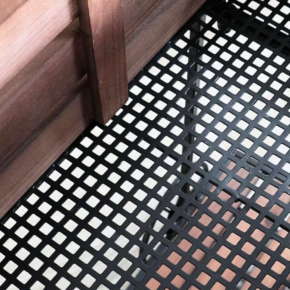 木のぬくもりと、黒のアイアンフレームの組み合わせは、