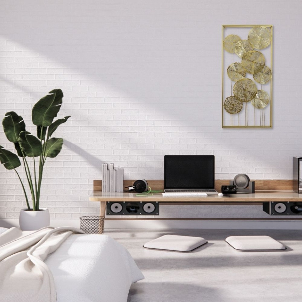 金色の輝きは、和室にも洋室にも溶け込み、特に白壁やニュートラルカラーの壁に映える存在感。