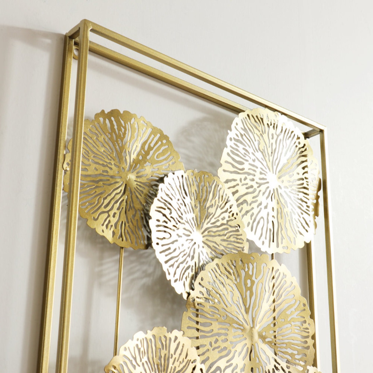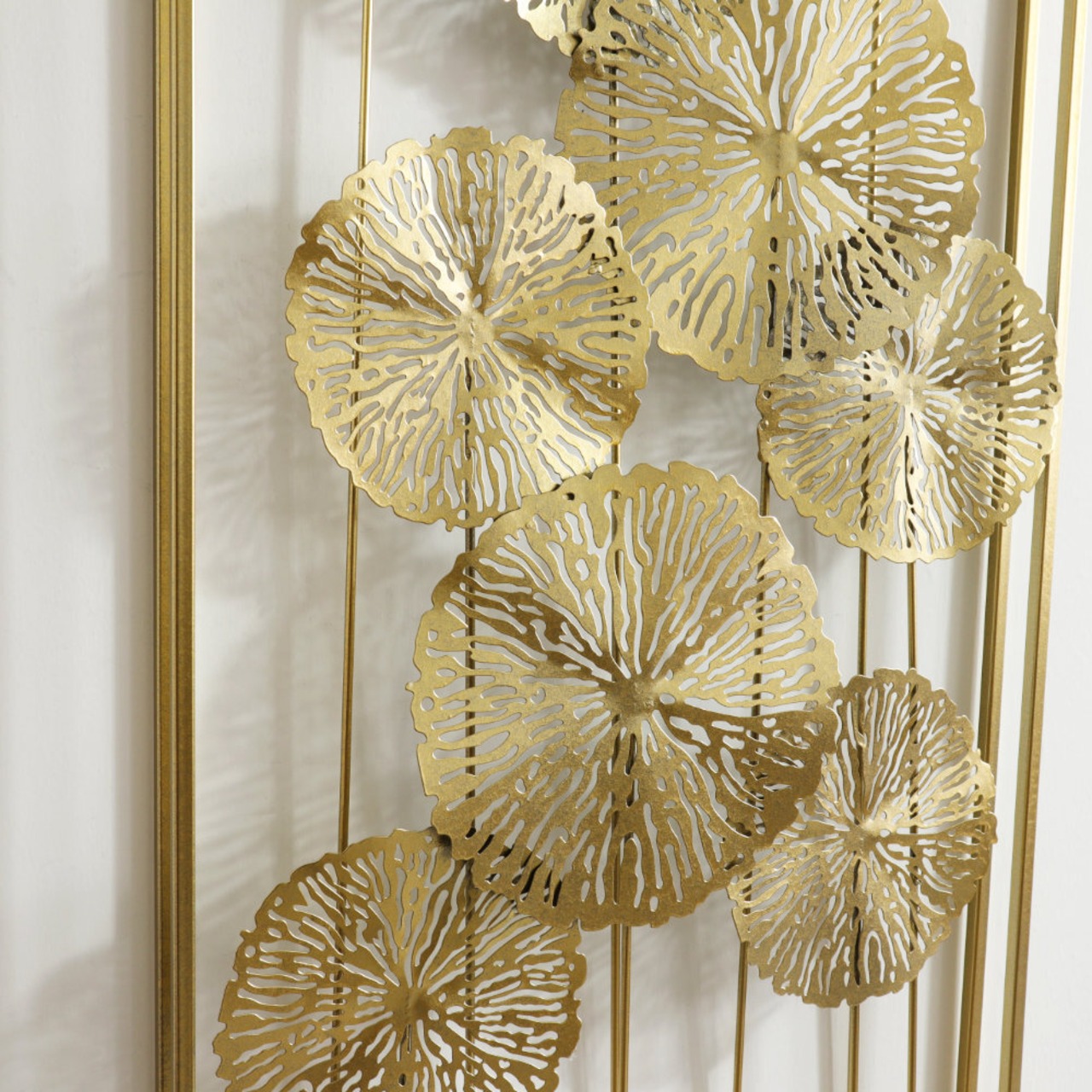 ゴールド蓮の葉モダンウォールアート|アイアン壁掛けインテリア 幅41cm×高さ84cm