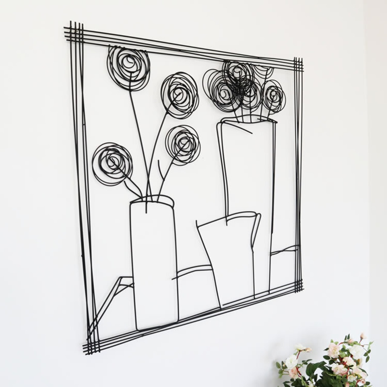 花咲く線のアート。アイアンウォールデコ/スクエアフレーム73cm
