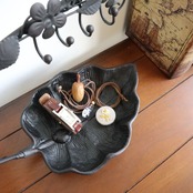 足元にはリーフ型のトレイがついていて、時計や指輪などの定位置にぴったり。